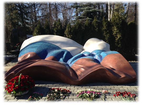 用这样一幅照片作为我们这篇报告的开场白。先简单介绍一下,去过莫斯科的朋友们可能都知道,眼前的这个雕塑是俄罗斯前总统叶利钦的墓碑。起伏的造型,代表着他波澜的一生。他是俄首位总统,却不同于其他前苏联领导人,墓碑并没有设在红场之上,而是和其他各界名人一起修立在新圣女公墓。即使整个墓碑的造型只有一面飘逸的国旗,不加任何文字与评论,但这位总统在人民眼中的地位也是褒贬不一。毕竟,在俄罗斯民众心里,是叶利钦在苏维埃政权的解体书上签了自己的名字,自此,世界上最大的共产主义国家宣告瓦解,不复存在。