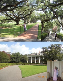 游览[橡树庄园](Oak Alley Plantation)-被列为美国南方地标的历史古迹,可以说是历尽沧桑,屋中的陈设精致辉煌,建筑大气,家具摆设透着农家庄园的古拙与粗犷。这里以房前这两排排列整齐的橡树而闻名。据说这些树都300多岁哟! 庄园的女主人热情的欢迎我们的到来~